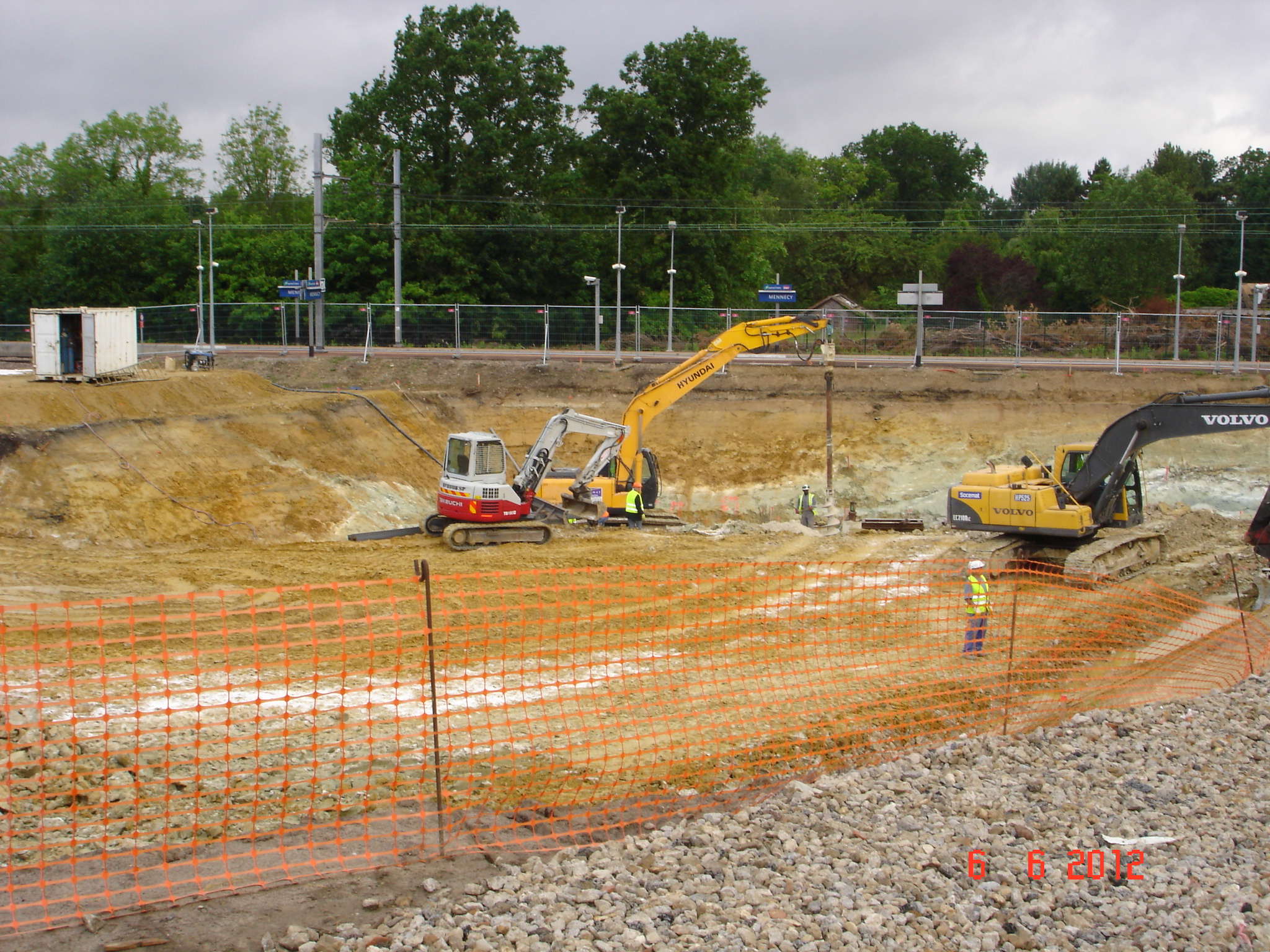 C’est dans cette excavation que sera construit le futur pont. Ce pont sera ensuite rippé à son emplacement définitif pendant le week-end de la Toussaint 2012.