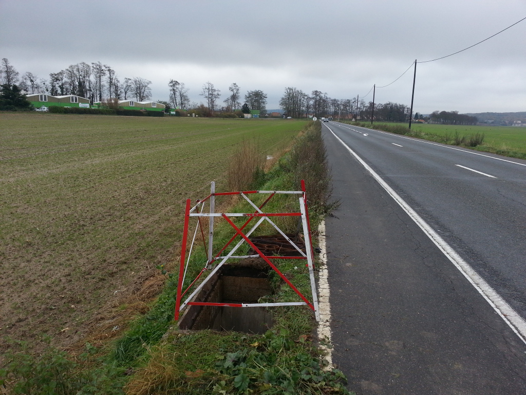 Cliquer sur les images pour les agrandir. Sur l’image du bas, le câble sectionné a un diamètre de 10cm, le sol de la chambre est à 2,50 m sous le niveau de la chaussée.