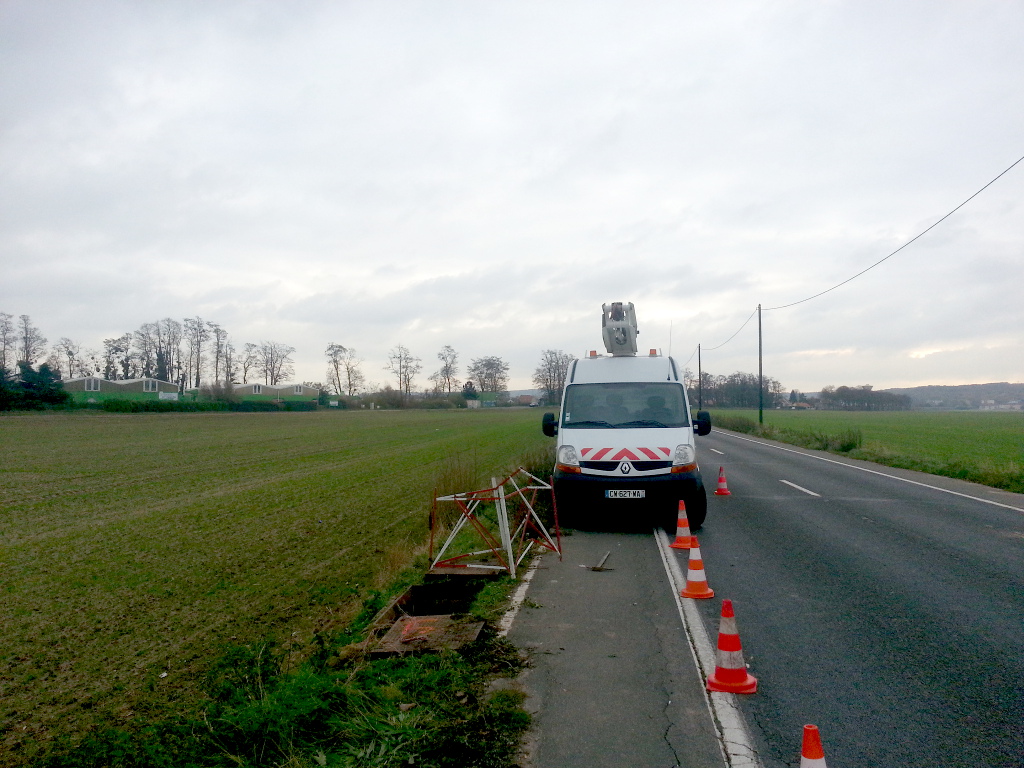 La seconde, prise à 14h42, montre les travaux qui se sont déplacés à l’extrémité sud du tronçon. 4 personnes sont au fond du trou. 900 des 1800 paires avaient été rétablies à 14h00. Les 900 autres le seront dimanche en fin d’après midi. Une très grande partie des lignes fonctionnera alors à nouveau, peut-être même toutes. Il reste cependant à le vérifier et, le cas échéant, à corriger des défauts que les essais révèleront.