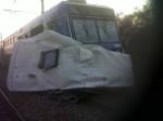 Sur le PN18, proche du chantier, le dernier morceau du bus vient d’être enlevé. C’est le toit du bus, ou plutôt ce qu’il en reste.