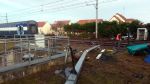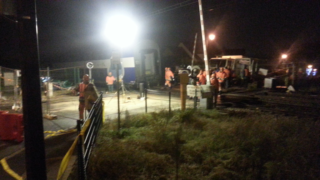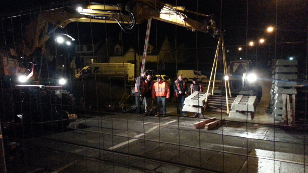 La reconstruction de la voie progresse. Les travaux continueront sans interruptions toute la nuit et lundi.