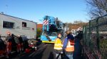 Changement de stratégie: au lieu de riper les wagons après les avoir levés sur des vérins, ce sont 2 grues de 130 tonnes qui ont été engagées sur les voies après avoir écarté les caténaires. Les grues sont des engins routiers, arrivés par convoi exceptionnel jusqu’au PN17 par la route.