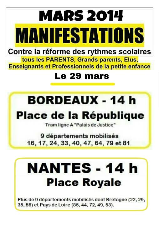 Manifestation contre la réforme des rythmes scolaires: c’est maintenant!