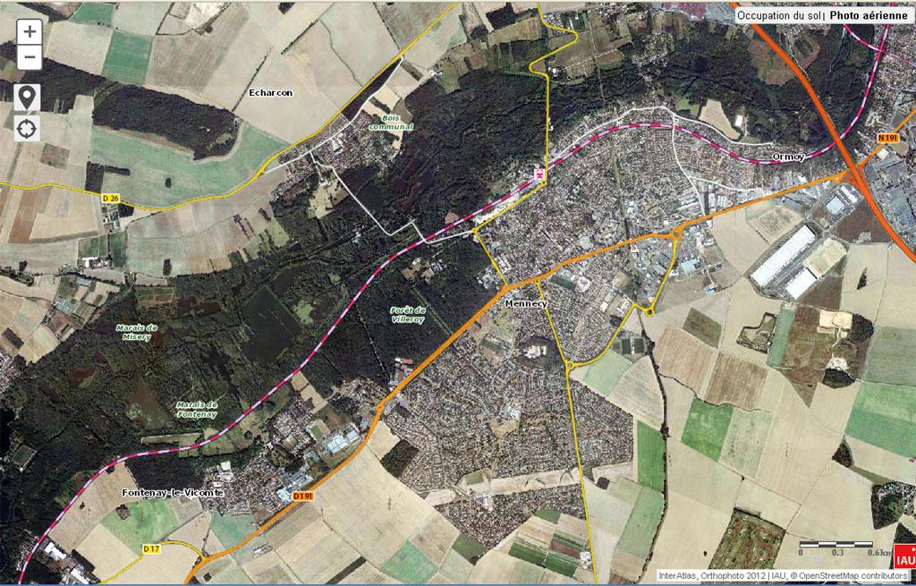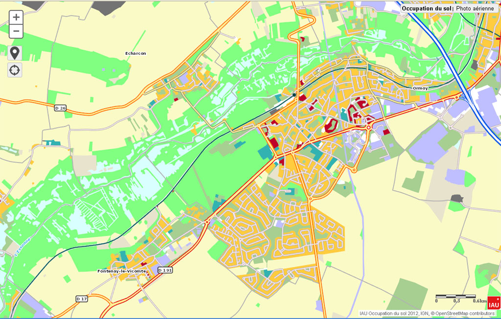 La carte des modes d’occupation des sols de la région est mise à jour tous les 5 ans, et cette mise à jour vient d’être mise en ligne. Alors intéressons à Mennecy, sachant que la carte est datée 2012…