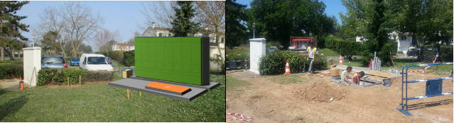 Les travaux de génie civil ont été faits, pour l’essentiel, cette semaine. Voici une photo prise mercredi, à droite et, à gauche, un montage pour illustrer ce que sera l’installation finie.