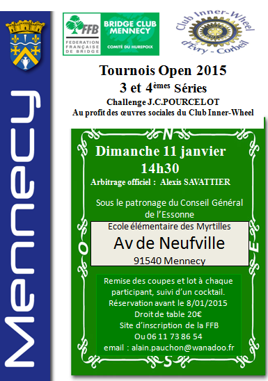 Il y avait 2 tournois au club de bridge de Mennecy aujourd’hui.