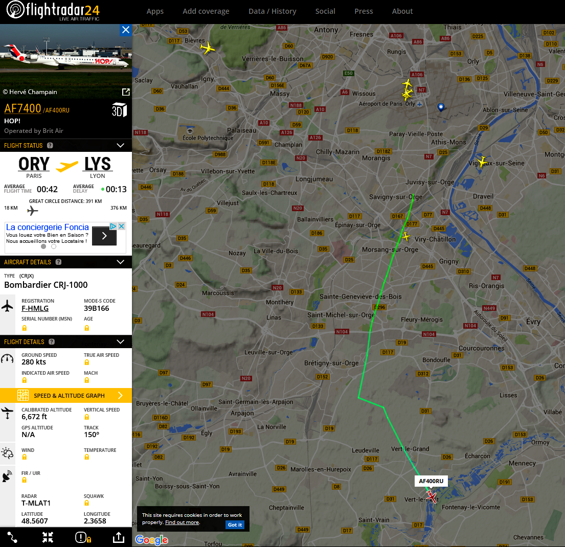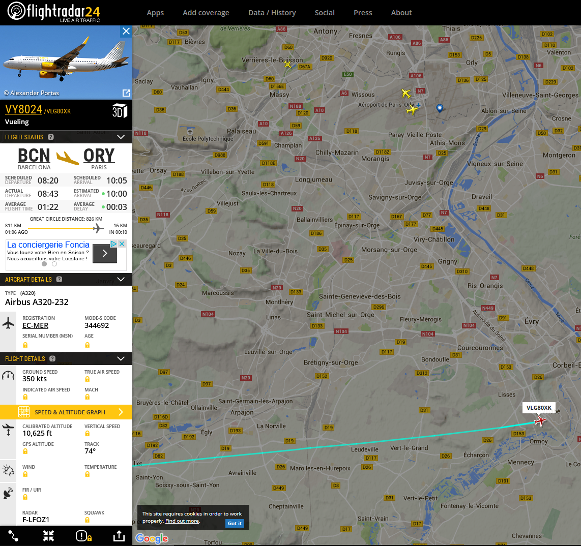Ces 2 copies d’écran sont issues du site https://www.flightradar24.com .
