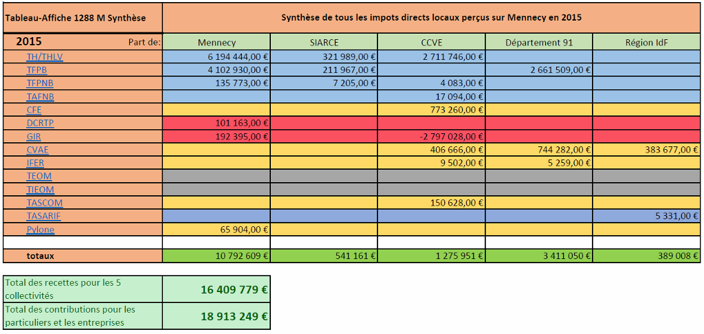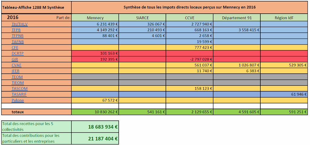 J’en avais parlé ici le 19 janvier.En 2 mots, la somme de tous les impôts locaux collectés par toutes les collectivités locales sur tous les contribuables de Mennecy a augmenté de 15% entre 2015 et 2016.