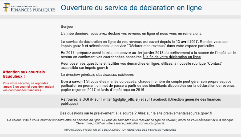Comme chaque année, les formulaires de déclaration de revenus arrivent et le service dématérialisé sur Internet vient d’ouvrir. J’ai reçu le mail de notification ce matin.