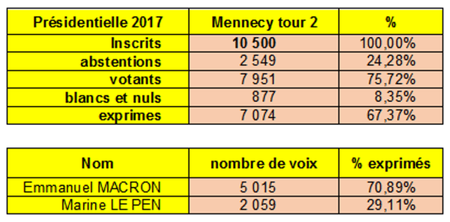 Et, la synthèse pour Mennecy au second tour des présidentielles 2017: