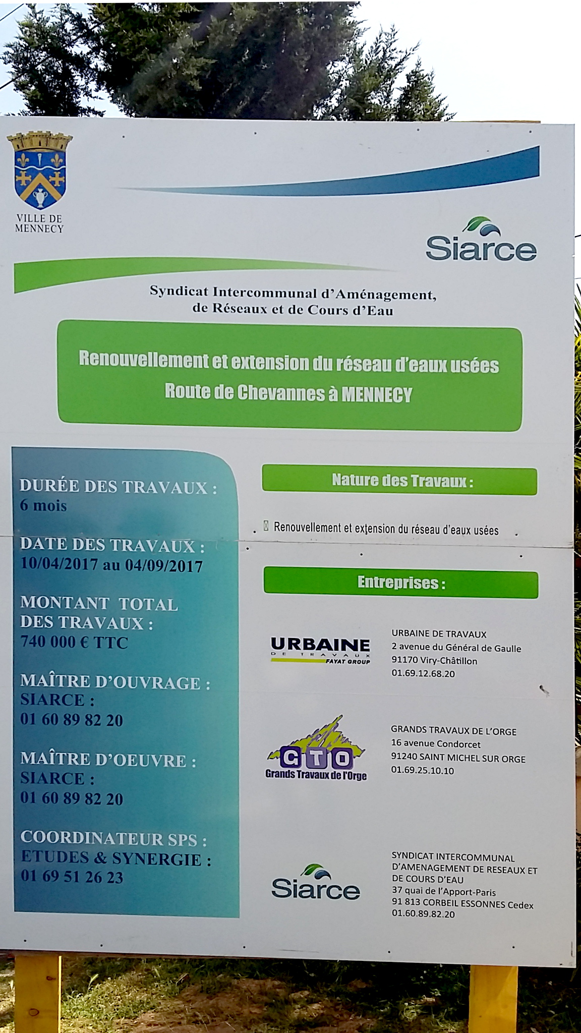 Un peu plus tard, le 19 avril 2016, le SIARCE attribuait un marché de travaux pour le renouvellement et l’extension du réseau de collecte des eaux usées route de Chevannes, pour un montant de 1.489.905,65€HT