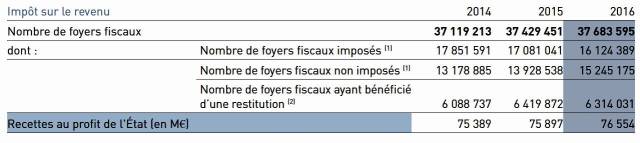 Les foyers exemptés d’impôts sur le revenu, en 2016, ajoutés aux foyers dont le montant d’impôt calculé est négatif, constituent 57% des foyers fiscaux du pays.
