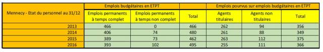 Après l’article du 10 septembre publié ici à propos de la masse salariale de la commune, j’ajoute maintenant les nombres d’emploi lus dans les comptes administratifs adoptés par le conseil municipal sur la même période: 2013 à 2016.