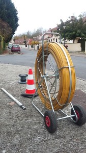 J’ai vu l’équipe de Sogetrel passer dans ma rue et j’ai pu alors parler avec eux. Je les ai ensuite revus plusieurs fois ailleurs en ville, toujours avec le touret d’aiguille et le rouleau de ficelle à passer dans les fourreaux.
