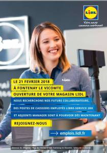 Vu sur le mur FB de la mairie de Fontenay Le Vicomte, l’annonce de l’ouverture du magasin Lidl pour le 21 février 2018 et les embauches qui vont avec.