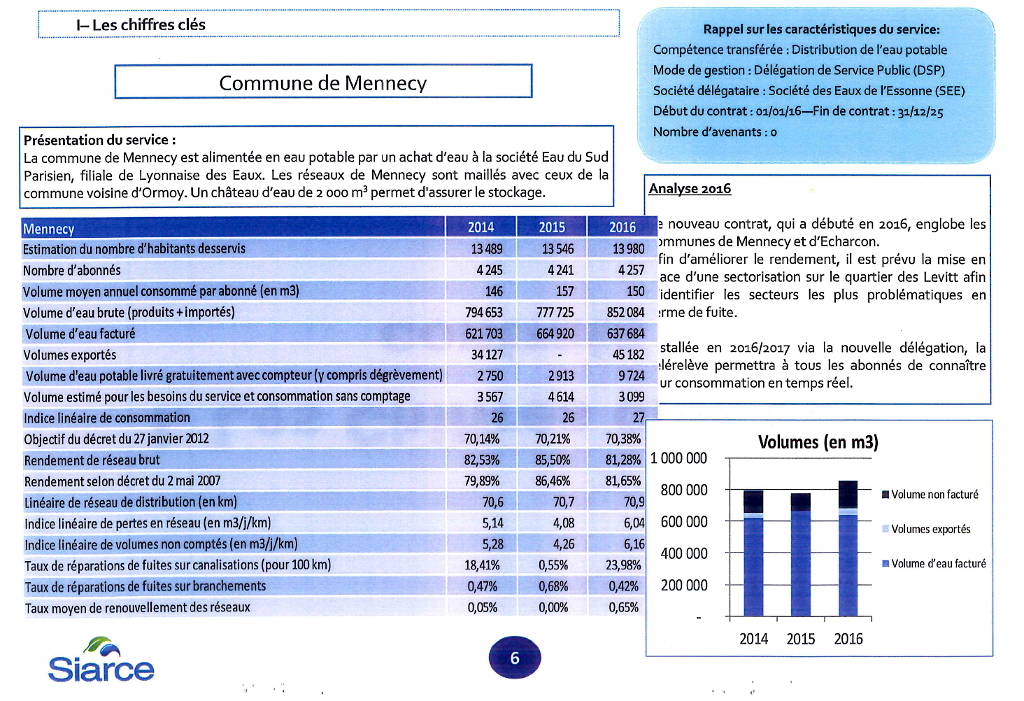 Mais regardons le rapport annuel de SEE sur la fourniture de l’eau potable en 2016.