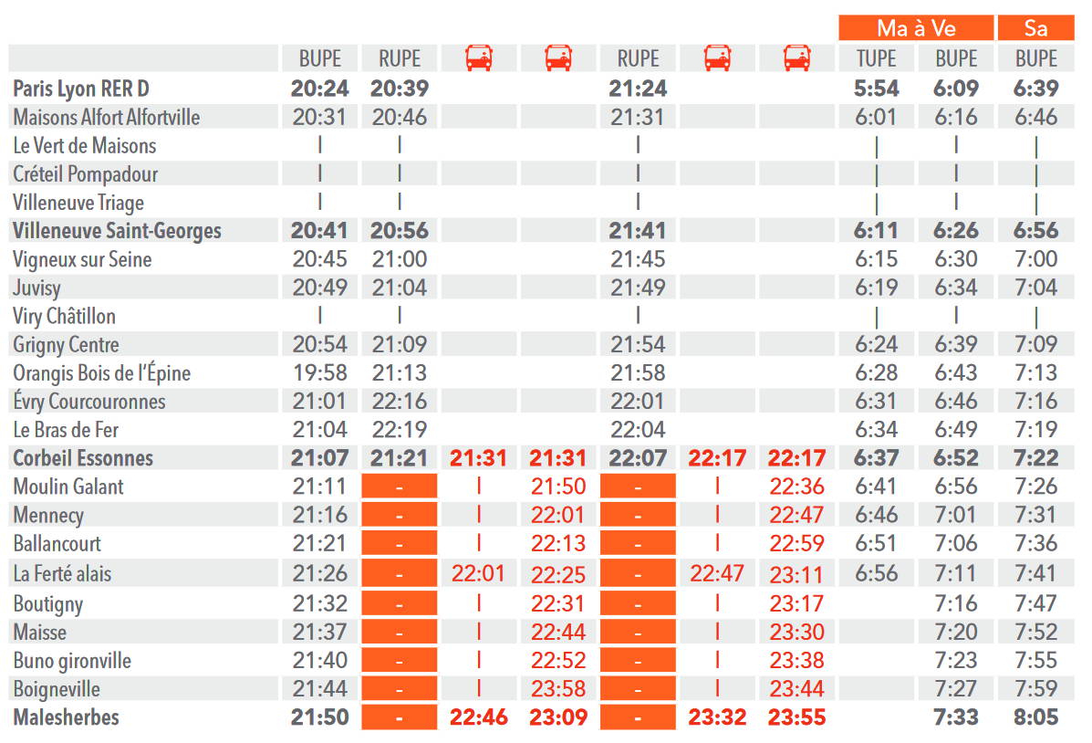 A cause de travaux de renouvellement de voie dans le secteur de Malesherbes, ce dernier train est terminus à Corbeil et sa mission est prolongée par un bus de substitution.