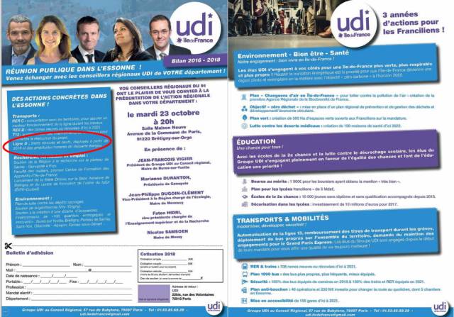 Dans le tract qui annonce cette réunion, une mention pour le RER D où il est clair que ces élus ne s’opposent pas, bien au contraire, à la coupure du RER D à Juvisy dès le 9 décembre prochain.