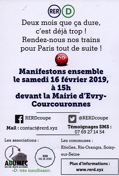 RER D et SA2019: appel à manifester le samedi 16 février à 15h00