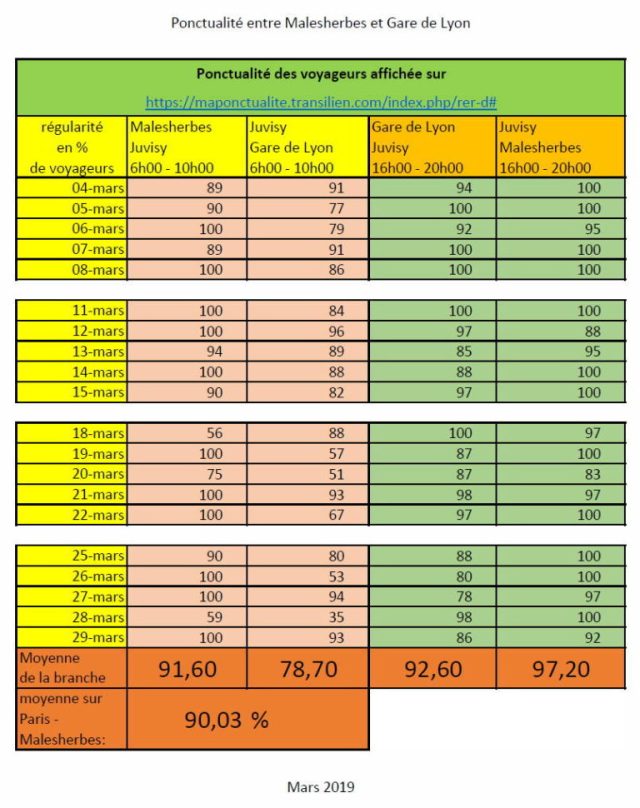 Cependant, si on calcule une moyenne arithmétique, on trouve une ponctualité de plus de 90%, en mars sur Paris – Malesherbes. C’est la raison pour laquelle SNCF est contente.
