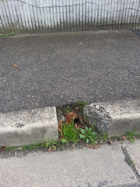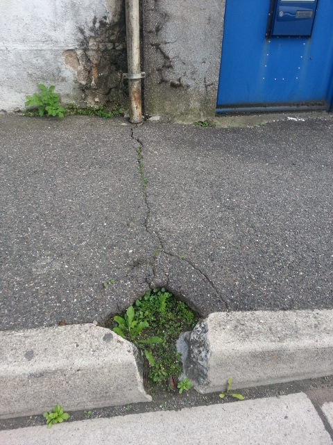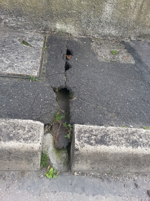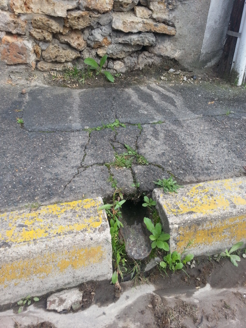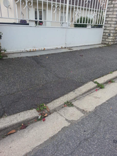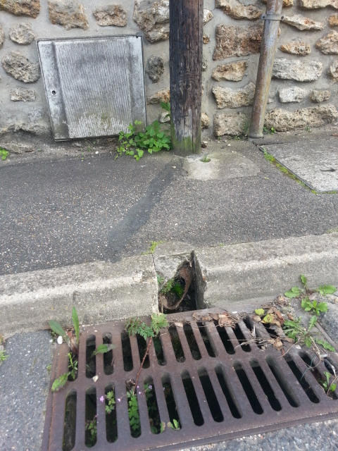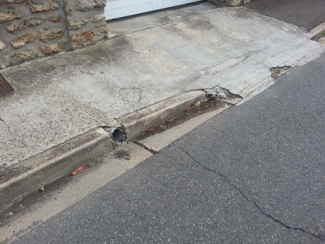 bordure affaissée, flaque d’eau, piétons éclaboussés régulièrement…
