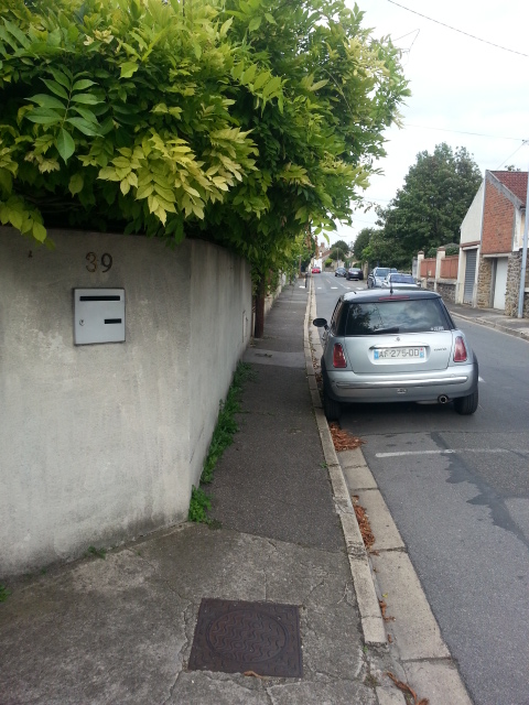 Un véritable piège pour les piétons. Il est impossible d’y faire passer 2 véhicules sur la chaussée et un piéton sur le trottoir, à cause de la végétation, de l’étroitesse du trottoir et des rétroviseurs des véhicules qui engagent le gabarit du trottoir.