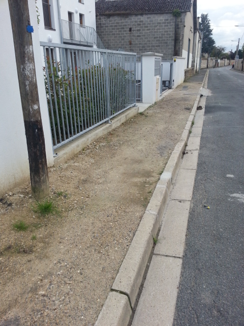 Le chantier est parti sans refaire le trottoir et en laissant le fil d’eau rempli de béton!!!