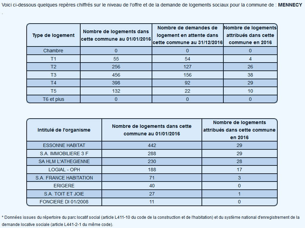 On trouve la liste des bailleurs sociaux présents à Mennecy sur Internet, sur le site du ministère du logement créé pour déposer et suivre une demande de logement social.