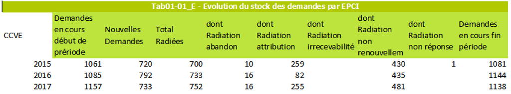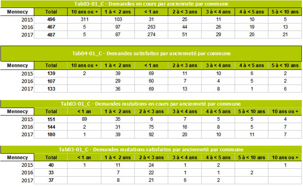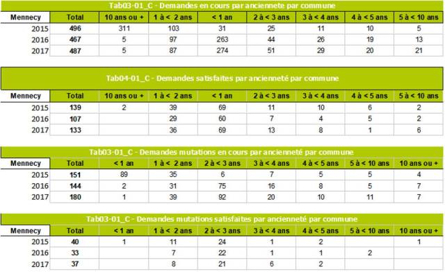 On peut y rassembler les chiffres sur les demandes en cours et demandes satisfaites à Mennecy sur les 3 dernières années, 2015 à 2017: